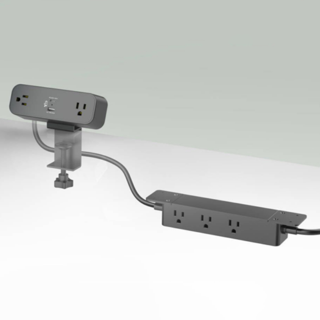 L’upCentric® Workstation Power Combo associe une station d’alimentation de bureau à pince et une multiprise sous le bureau pour une solution d’alimentation complète et pratique. La station d’alimentation à pince comprend deux prises secteur et des ports USB-A et USB-C, facilitant la recharge des appareils ou l’accès à l’alimentation pour une utilisation temporaire.