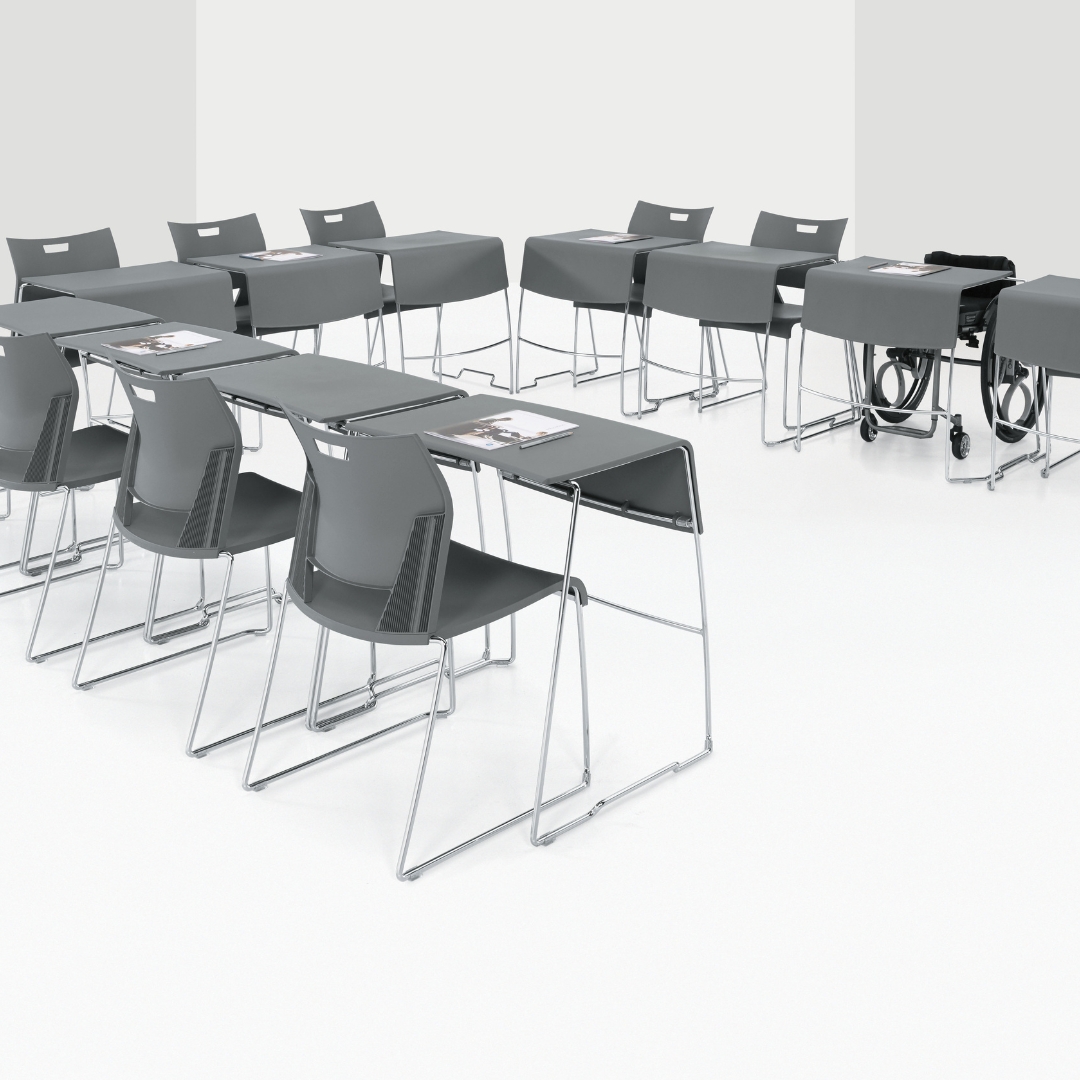 Les tables empilables Duet ™ sont faciles à configurer, rapides à empiler et faciles à ranger. Elles transforment n’importe quel espace en un environnement d’apprentissage efficace, permettant de passer rapidement des cours magistraux aux discussions collaboratives. Elles s’intègrent parfaitement à nos chaises empilables Duet . Faites votre choix parmi notre palette de couleurs contemporaines.