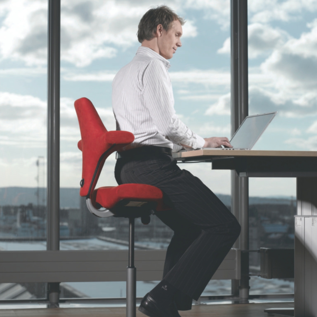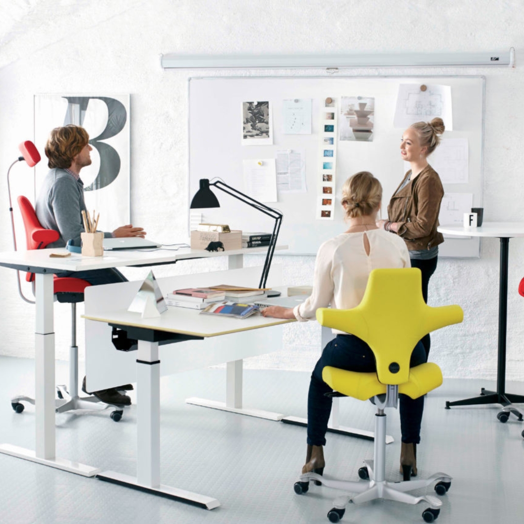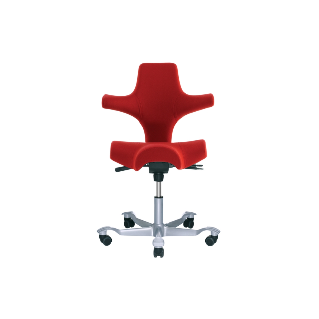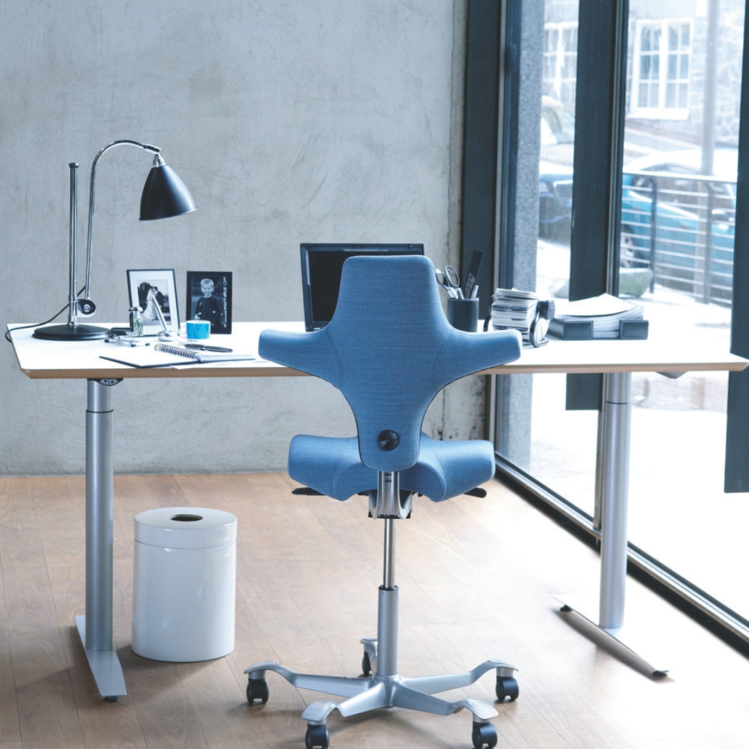 HÅG Capisco s’adapte intuitivement aux mouvements naturels du corps et permet d’infinies possibilités de variations de la position assise. La forme unique du dossier offre un support parfait dans la position assise sans limiter la capacité de bouger. En fait, la chaise est conçue pour favoriser une plus grande liberté de mouvement. La chaise comme le tabouret-selle peuvent être réglés en position de travail très basse ou très haute et jusqu’en position perchée pour une mobilité accrue. Voilà la combinaison idéale avec une table à hauteur réglable.